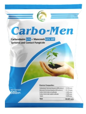 CARBO-MEN is a systemic and contact fungicide used for seed treatment. FINISH is a effective control of tikka leaf spot, collar rot and dry root rot diseases of Groundnut, Blast on Paddy, Early blight, Late blight, black scruf on Potato, Blister blight, Grey blight, Downey mildew, Powdery mildew & Anthracnose on Grape, Powdery mildew & Anthracnose on Mango, Leaf spot, fruit rot and Powdery mildew on Chilli, Fruit scab & Powderymildew on Apple and Tikka leaf spot, Collar rot and Dry root rot on Groundnut.